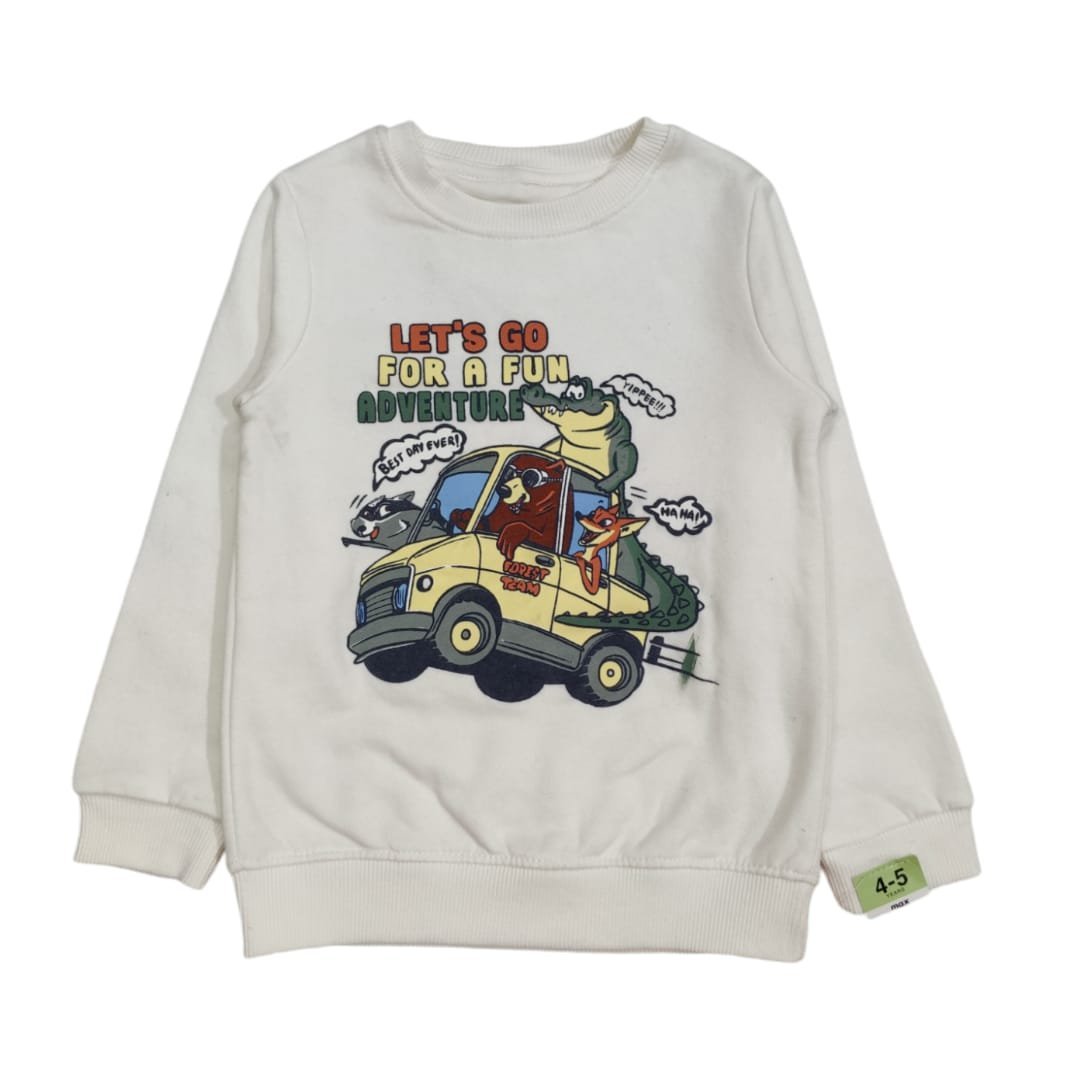 The sweatshirt for boys features a comfortable, soft fabric with a relaxed fit, ideal for casual wear. It includes a ribbed crewneck, cuffs, and waistband for a snug fit and added durability.